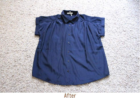 襟部分のファンデーション汚れは、残念ながら落ちていませんでした。 仕上がりも、脇から裾に向かってシワが入ってしまっていて残念…。