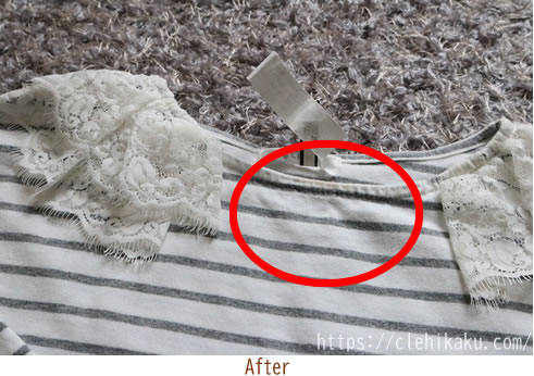 襟にレースが付いたボーダーカットソーは、首回りにファンデーション汚れが付いていたので、クリーニングに出してみました。