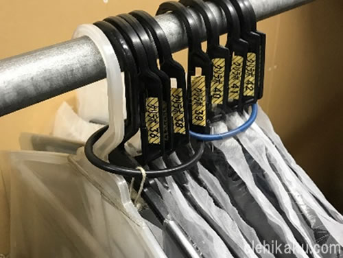 セーター類はハンガーに通気性のよい袋をセットして、その中に収めて保管。もちろんお客様ごとにきちんとまとめられていました。