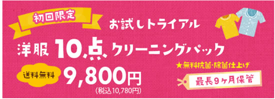 [初回限定]お試しトライアル10点クリーニングパックは、通常料金より3,000円お得な 10,780円(税込)です。
